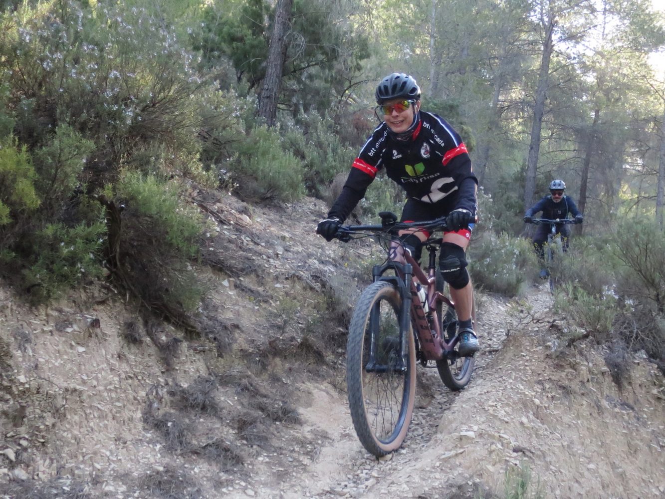 Después de las borrascas de viento, con unos cuantos árboles por los suelos, llega el esperado día preprimaveral, soleado y que nos muestra ya las flores en los almendros. Esta semana toca una nueva modificación previo ensayo por nuestros veteranos de la ruta que el calendario nos indicaba (la de Onda) y que de acuerdo con las nuevas condiciones del monte no ofrecía condiciones adecuadas para nuestra Peña. Nuestros organizadores describen esta ruta de Altura como una de las clásicas y bien conocida de Btt Moncada desde muchos años, la última vez en 2016 y por lo tanto no existían eléctricas, 10 años han bastado para un cambio sustancial de nuestras bicis. Un ruta que nos lleva por la zona de Viver y Jérica a través de pistas perfectas, arregladas, supercompactadas y que nos facilitan el camino, aunque para nuestro gusto preferíamos unas pistas más rurales y que nos sometían a un mayor esfuerzo. La otra parte nos lleva por sendas variadas, unas con entretenidos toboganes y otras con trialeras perfectamente ciclables y divertidas. Al final, una buena preparación para nuestro físico de cara al viaje de temporada que ya lo tenemos en mente. Nos toca tener poco de paciencia y mientras tanto disfrutamos de estos buenos momentos.