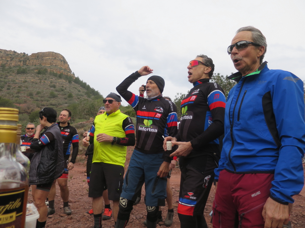 Ruta por nuestra querida Espadán que los sabios de la Peña tuvieron que modificar sobre la marcha y que pudimos disfrutar de lleno. Dos maravillosas y técnicas sendas de ascenso hicieron subir las pulsaciones, el resto más de lo mismo: fantasías animadas sobre dos ruedas, celebraciones, jamoncito y felicidad de una grandiosa Peña.