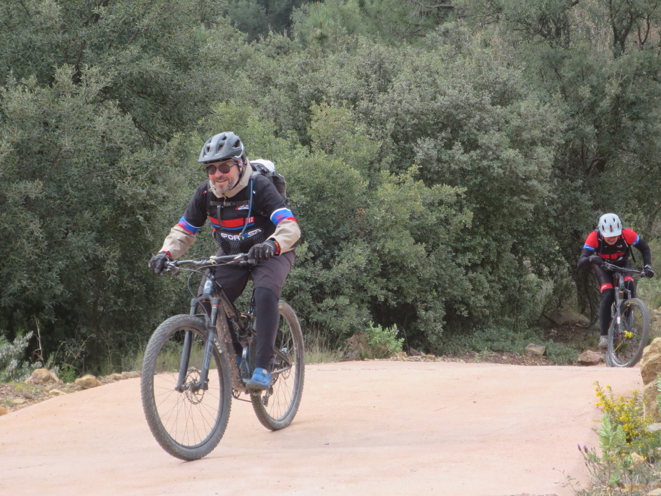 Segundo día con muchas ganas de seguir saboreando del terreno que nos ofrece esta maravillosa tierra de Cameros (bosques de robles, hayedos, prados, ríos y arroyos de agua, sus vaquitas, …). Aquí pudimos hincar bien el diente a nuestras bicis y sacar toda adrenalina a pasear con unos ascensos y descensos propios de un cuento de btt, sobre todo cuando de repente aparece la figura del prado de libre-escape en el que nos sentimos en plenitud de libertad. Especial mención al lugar de reposición del placer gastronómico de la zona: el restaurante Venta de Piqueras, con una zona de sobremesa que ni en las mejores películas. ¡Otro día de felicidad!