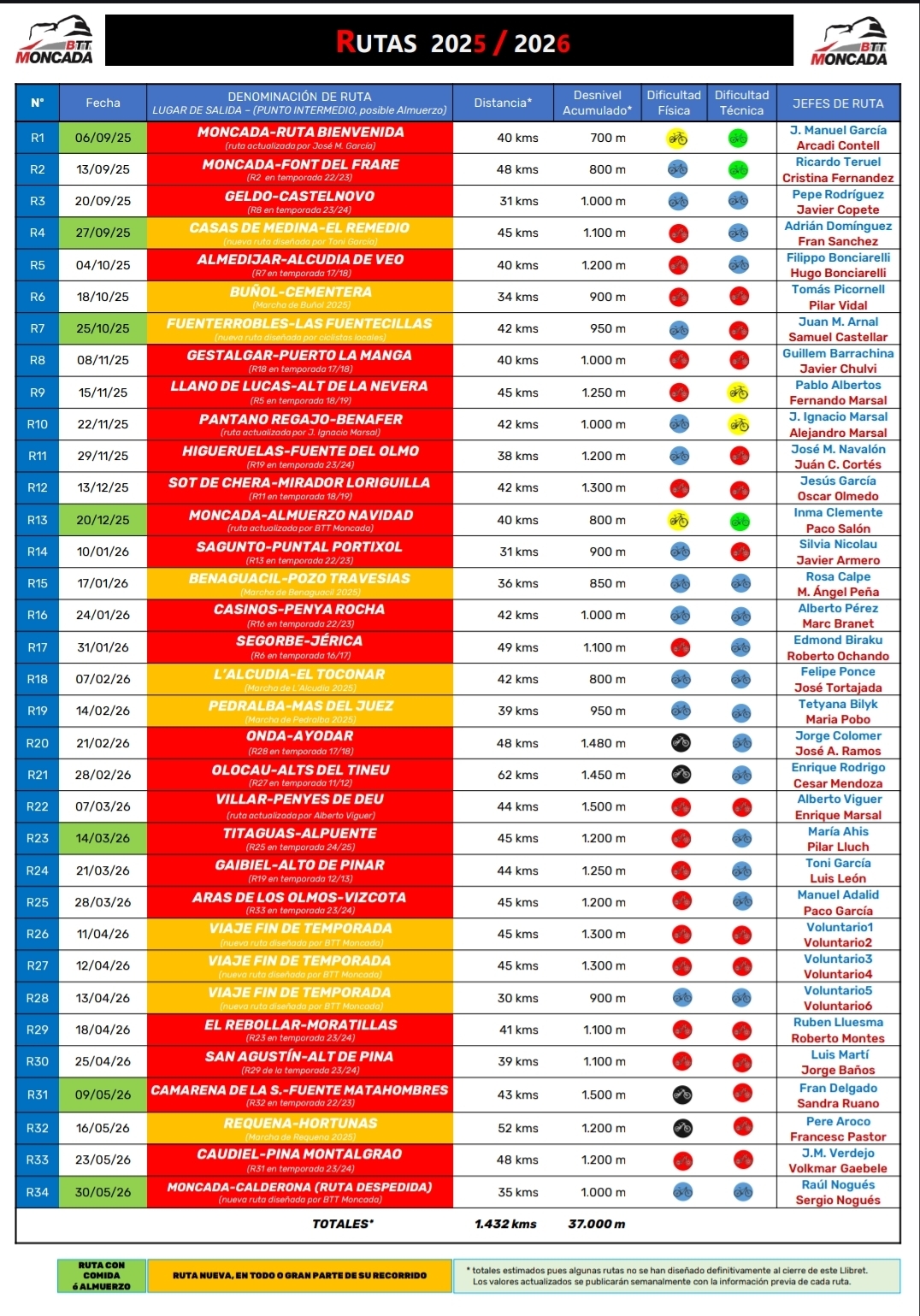 – Durante la temporada se realizará un registro de asistencia a las rutas, para hacer un reconocimiento al ranking de los tres compañeros con más asistencias al final de temporada